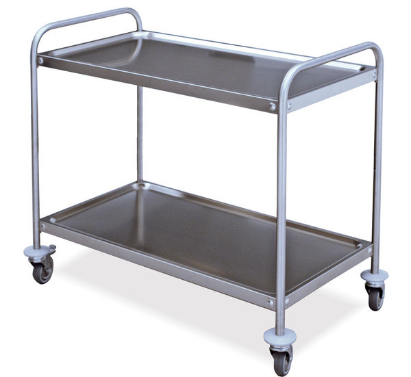 Carrello di servizio in acciaio inox con 2 ripiani